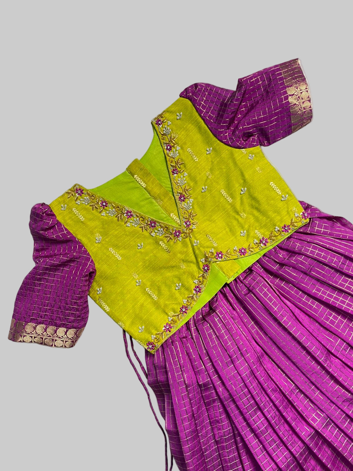 No. of. Components : 2Components : skirt and topPattern : pattu pavadaiType of Work : embroidered work on skirt Neckline :...