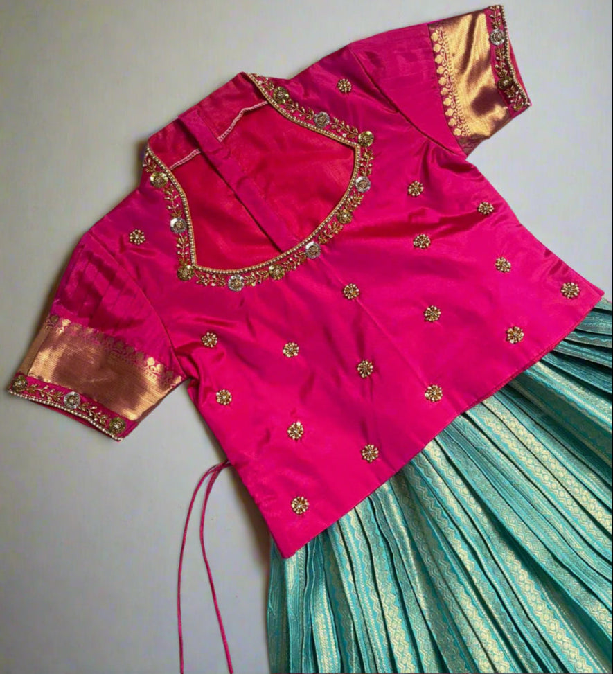 No. of. Components : 2Components : skirt and topPattern : pattu pavadaiType of Work : intricate work on top and...