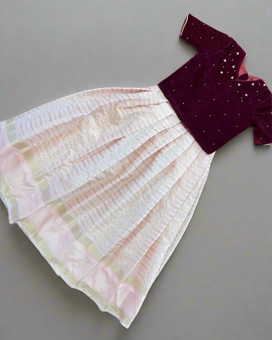 NOTE: Customer's own fabric, can be customized similar to this. No. of Components : 2Components : Skirt and Pepulam top Pattern...