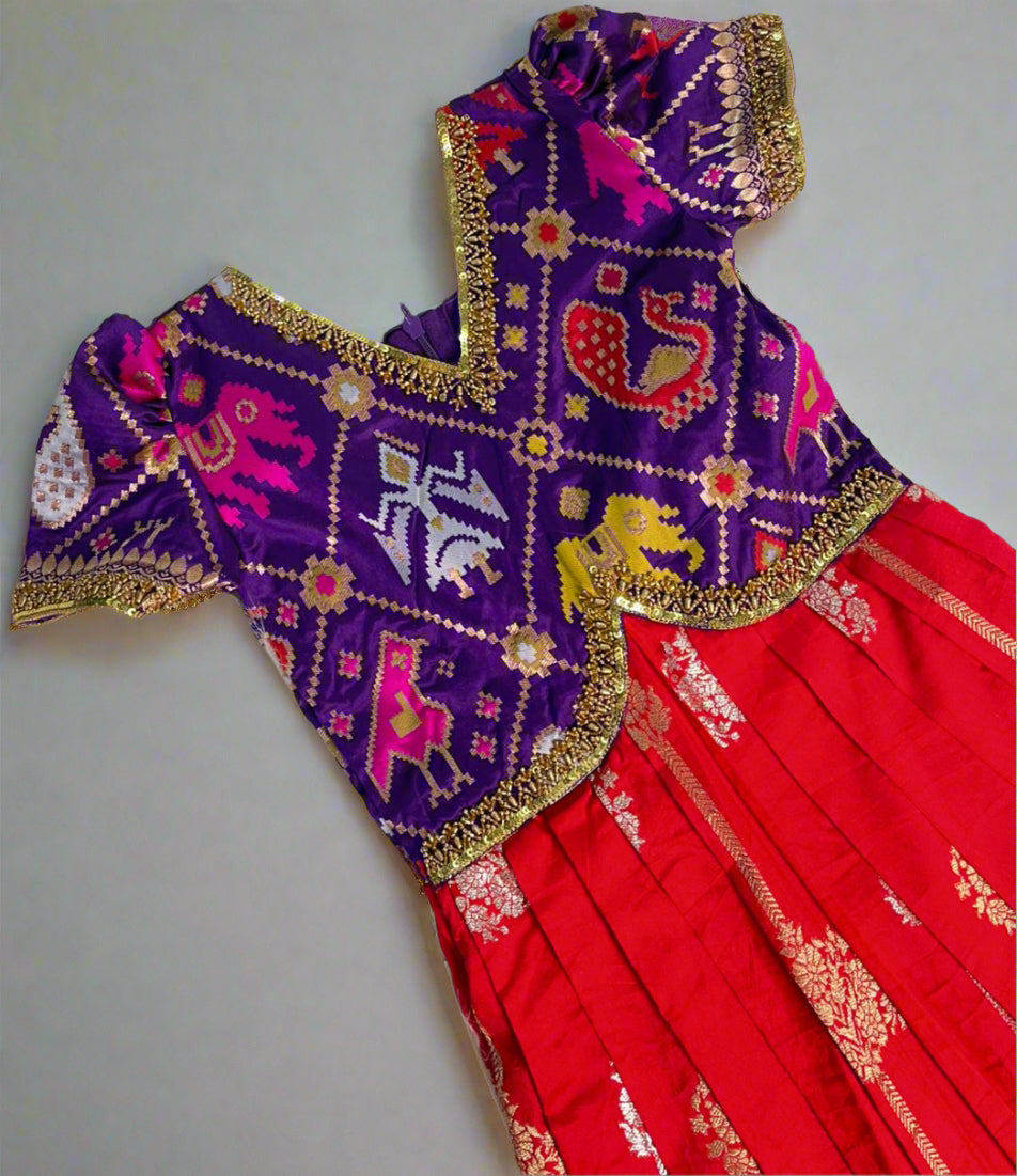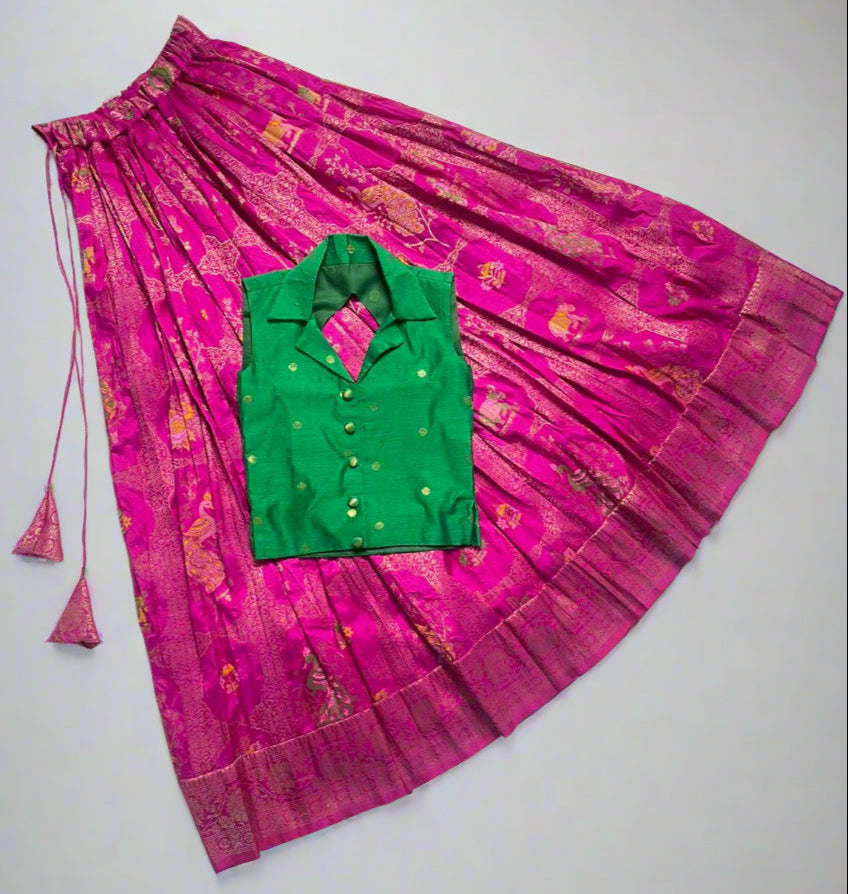 No. of. Components : 2Components : Top and skirtPattern : Pavadai Sattai Type of Work : -Neckline : collar pattern Sleeve type...