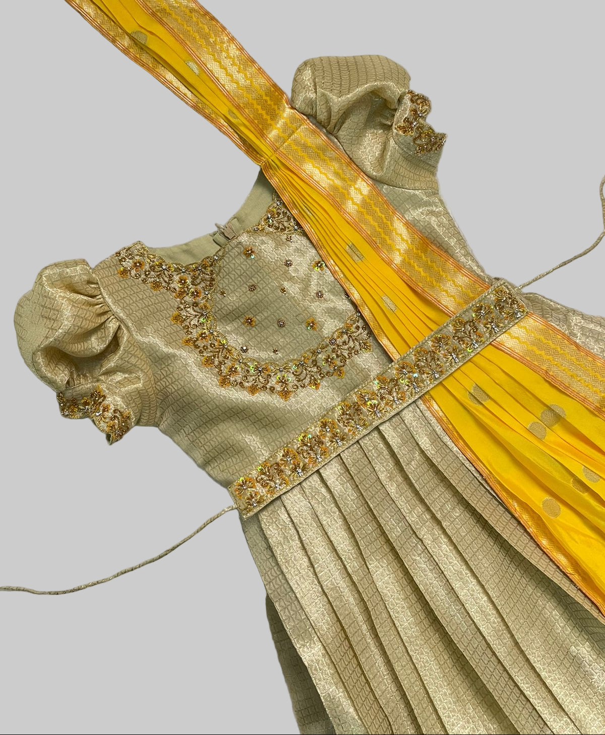 No. of. Components : 3Components : Gown, dupatta and waist beltPattern : Gown setType of Work : Aari work on...