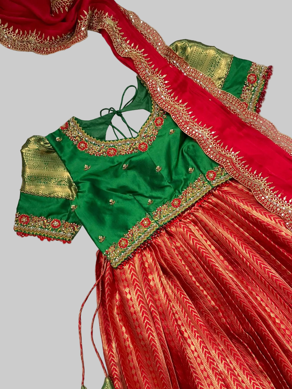 No. of. Components : 3Components : skirt, blouse and dupattaPattern : pattu pavadaiType of Work : intricate work on top...