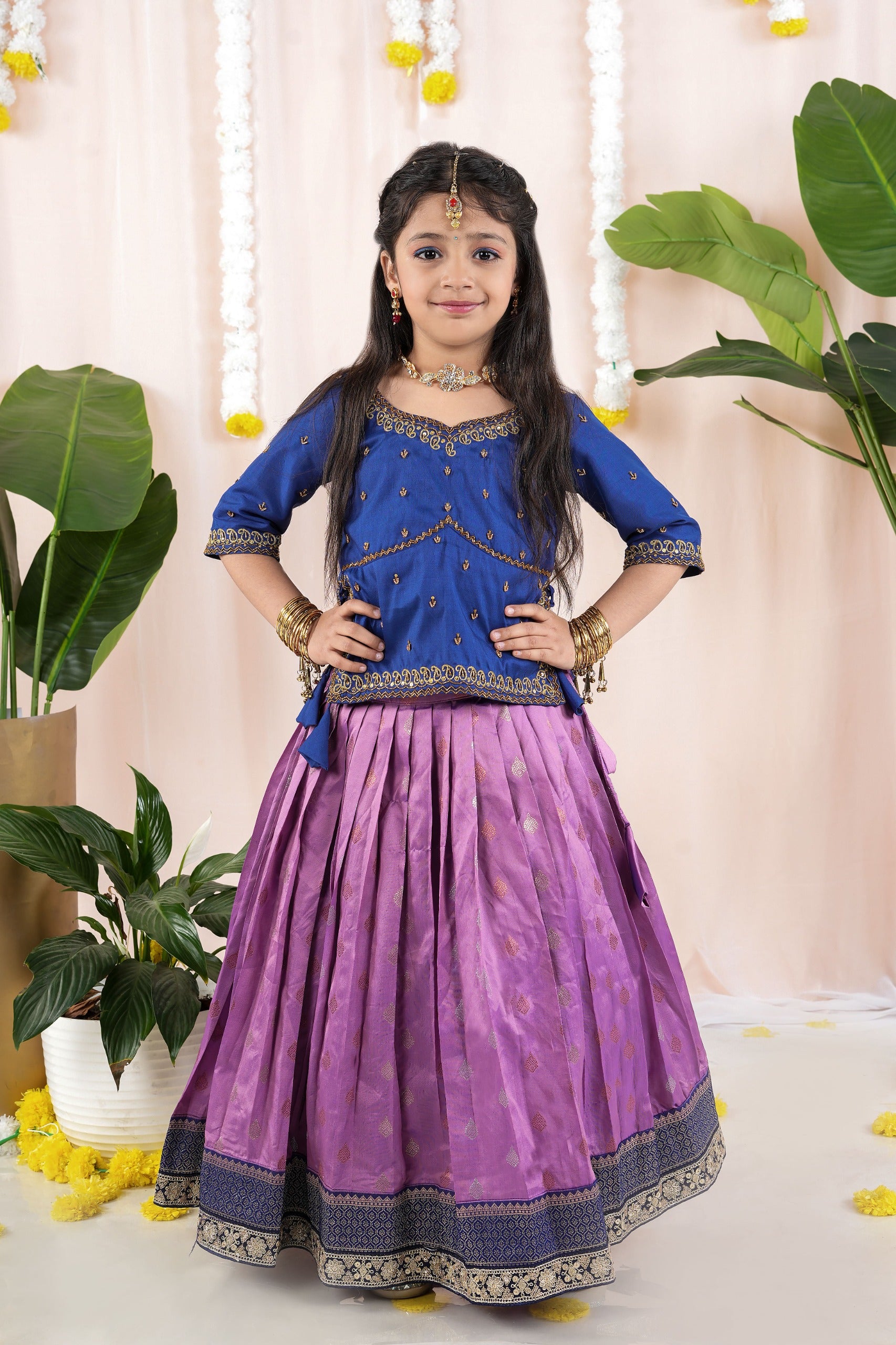 No.of. Components: 2Components: Skirt and TopPattern : Pattu pavadai setType of Work: grand aari work on top and sleeves, full...