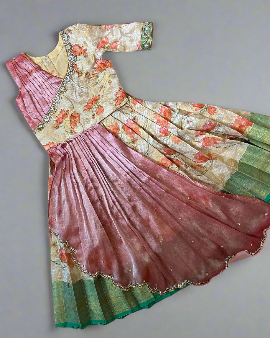 No.of. Components: 1Components: GownPattern : Mid length gownType of Work: Layered Gown With TREE Painted & Highlighting Aari works Neckline: Square...