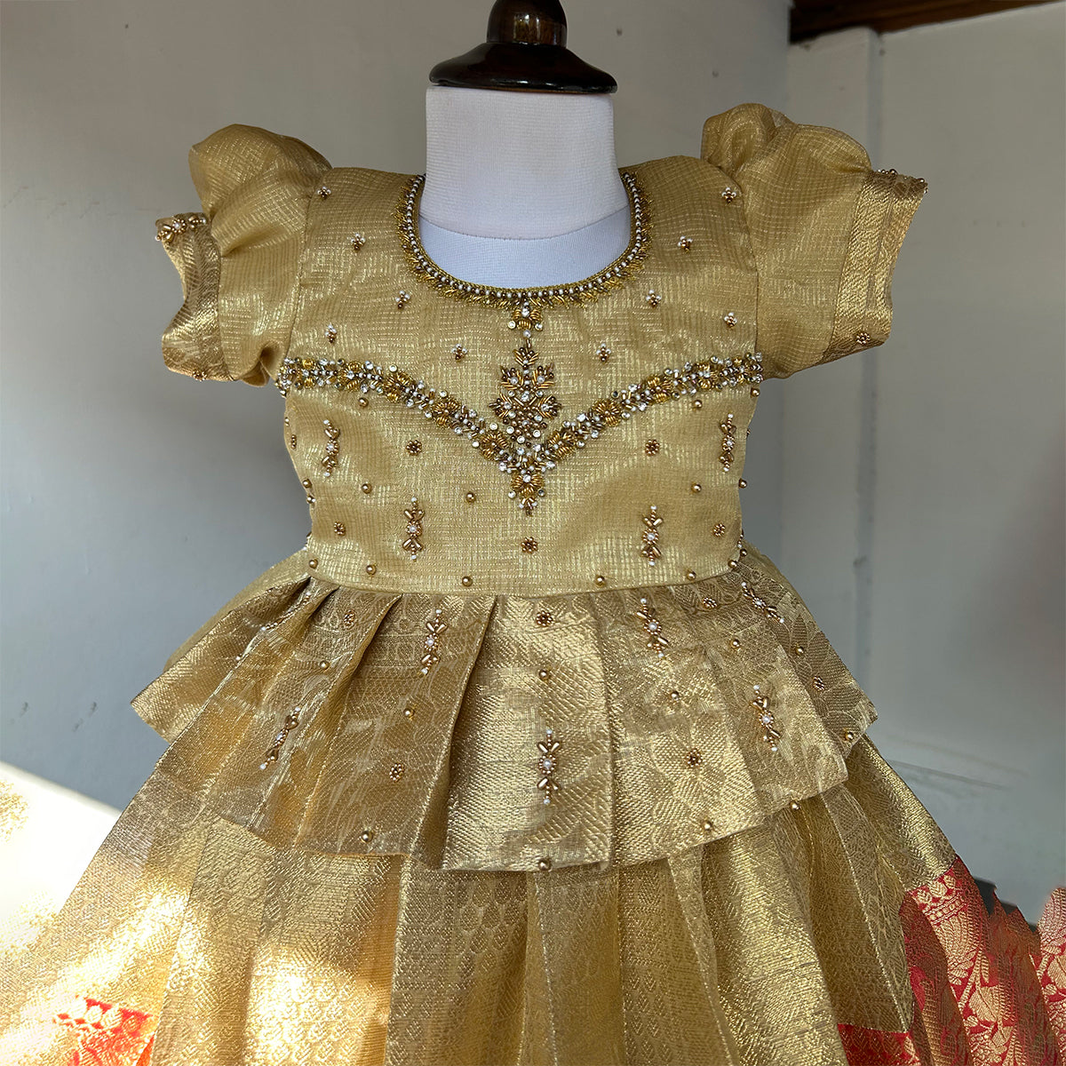 No.of. Components: 2 Components: Top & PetticoatPattern : Pavadai Sattai Type of Work: Peplumed Top with Heart lined work Neckline: Round Sleeve type:...