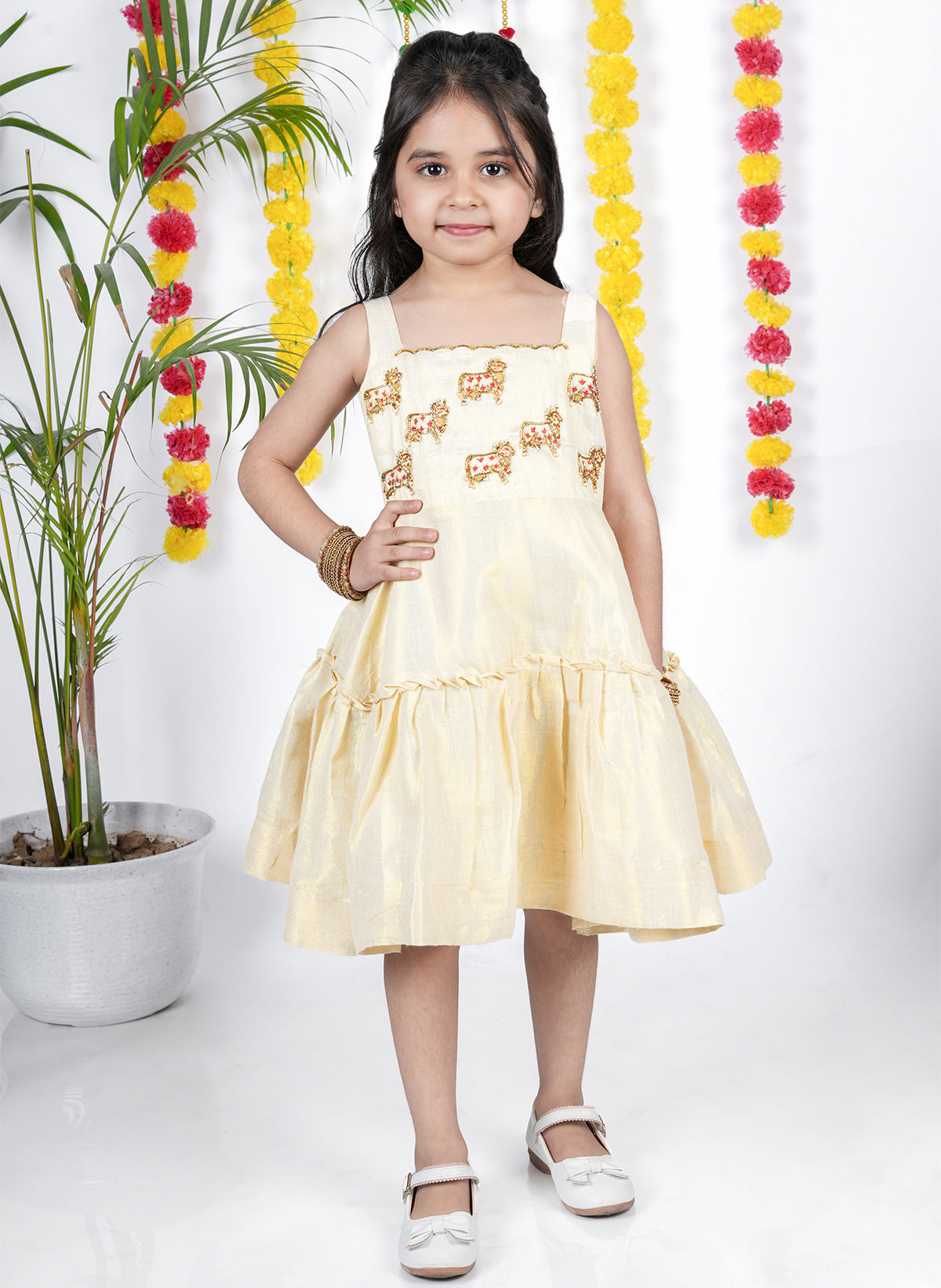 No.of. Components: 1Components: GownPattern : Mid length gownType of Work: Layered Gown With PICHWAI Painted & Highlighting Aari works Neckline: Square...