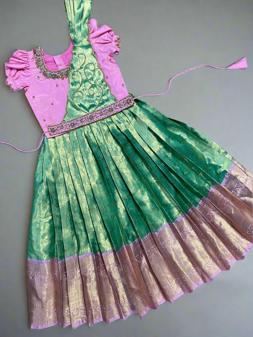 No. of. Components : 3Components: Top, Skirt and Dupatta Pattern : Pavadai sattai set Type of Work : Aari work on all...