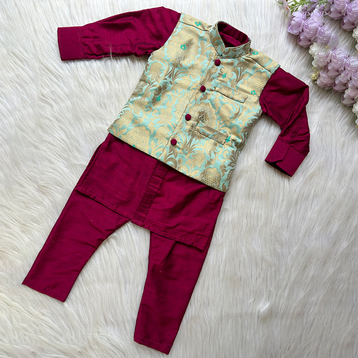 No.of. Components: 03Components: Kurta , Pant & Overcoat Pattern : 3 piece kurta set Type of Work: Knee length kurta with matching...