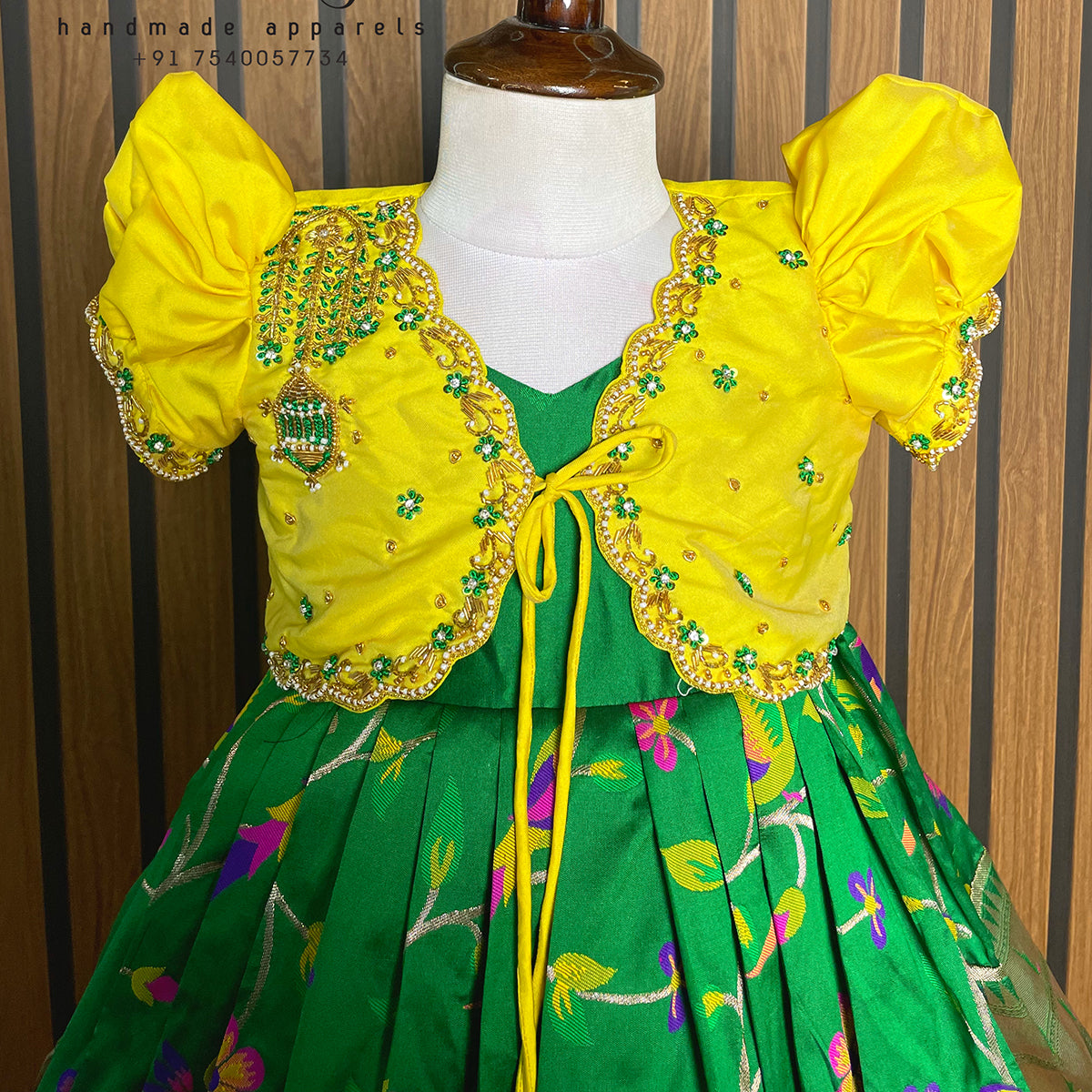 No.of. Components: 2Components: petticoat & Overcoat Pattern : Overcoat dress Type of Work: Scalloped overcoat with Cage work & Double layered PetticoatNeckline:...