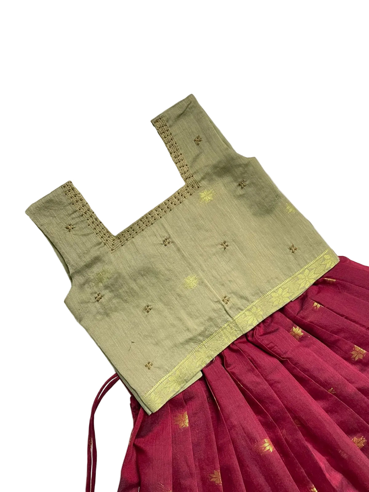 No.of. Components: 02 Components: Top & Skirt Pattern : Pavadai sattai SetType of Work: work on neck and top Neckline: Round Sleeve type: sleeveless Fabric:...