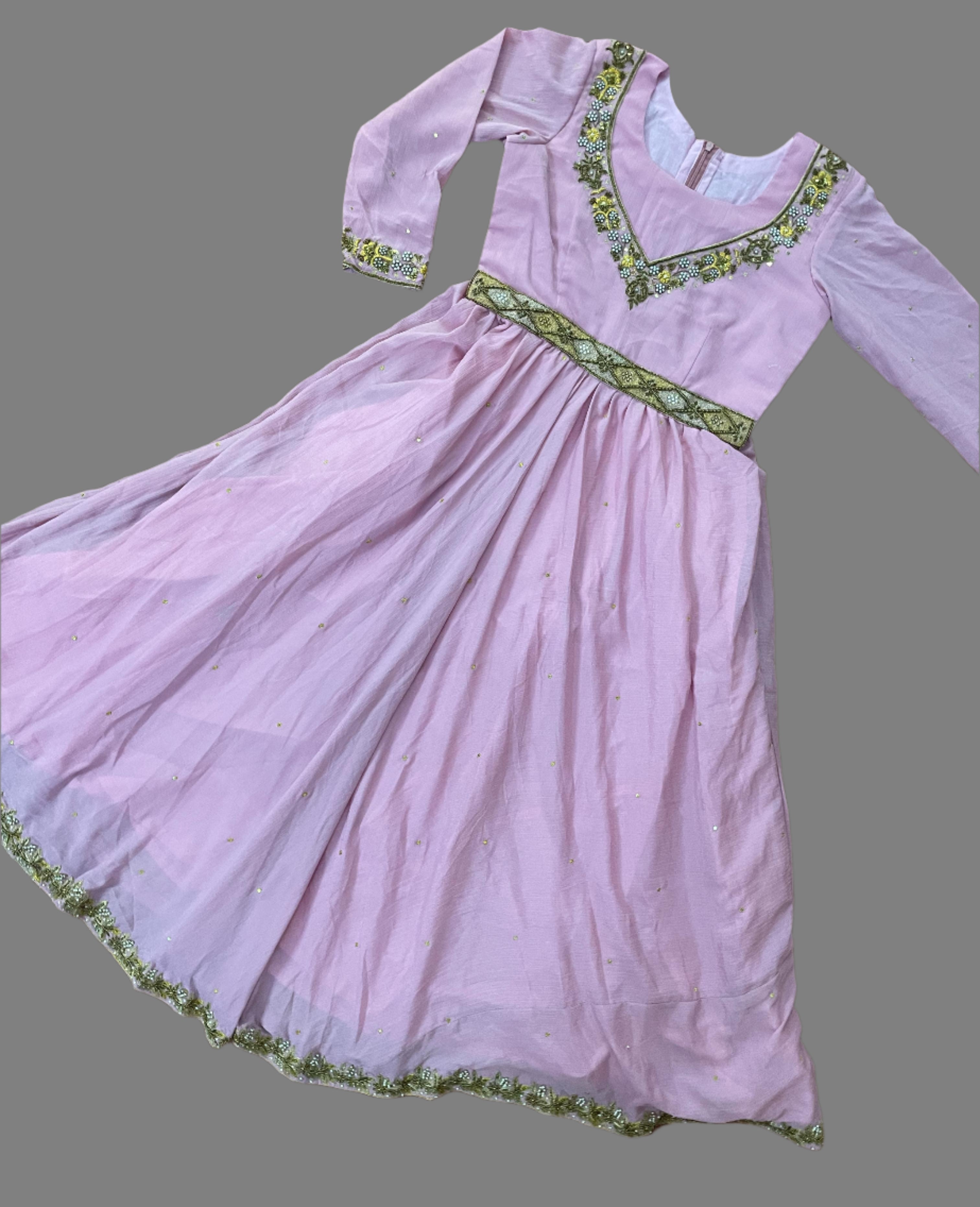 No.of. Components: 2Components: Skirt and TopPattern : Top with elbow sleeve and Full flared skirtType of Work: grand aari work...