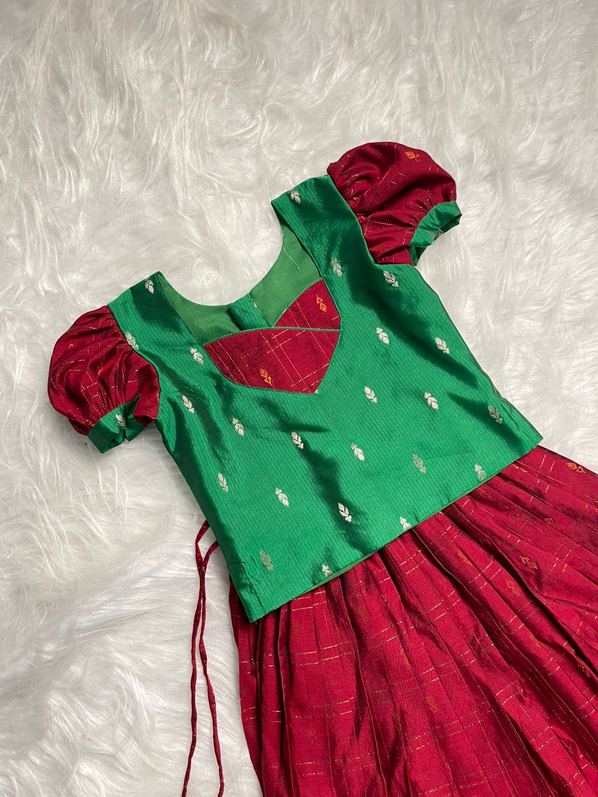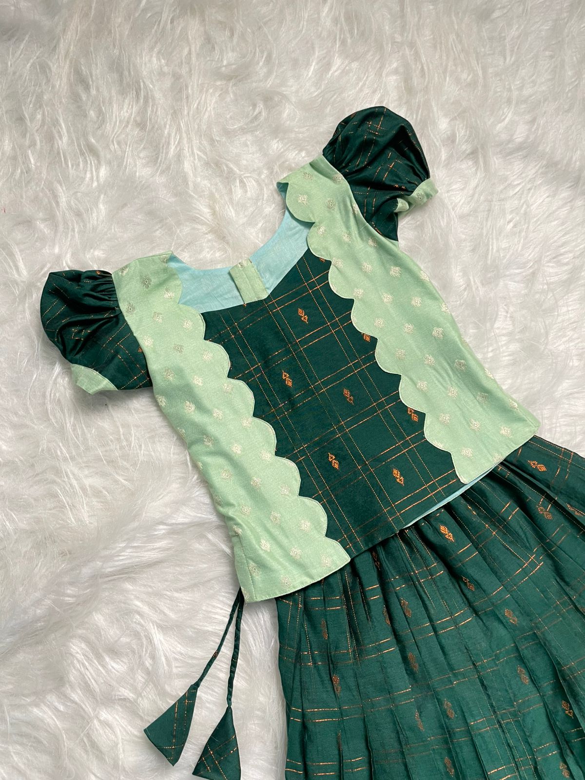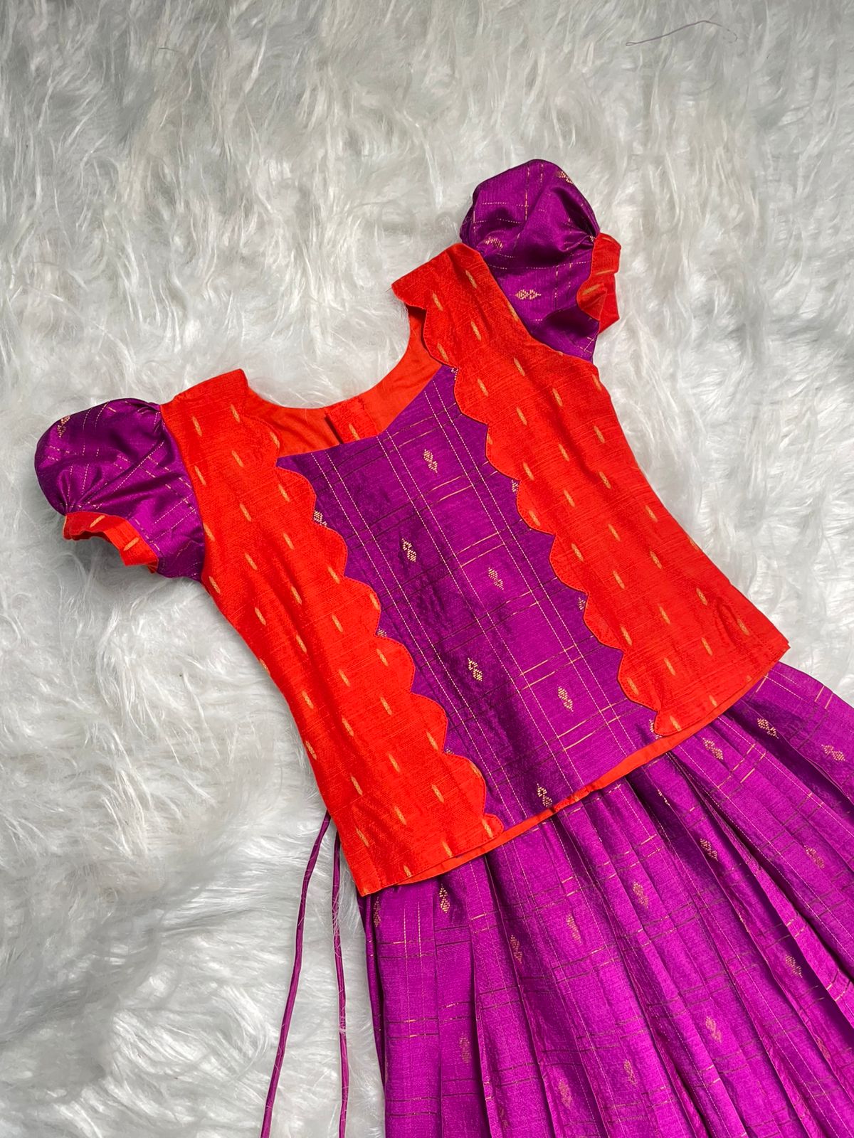 No. of. Components : 2Components : top and skirtPattern : pattu pavadaiType of Work : -Neckline : scallop v neckSleeve...