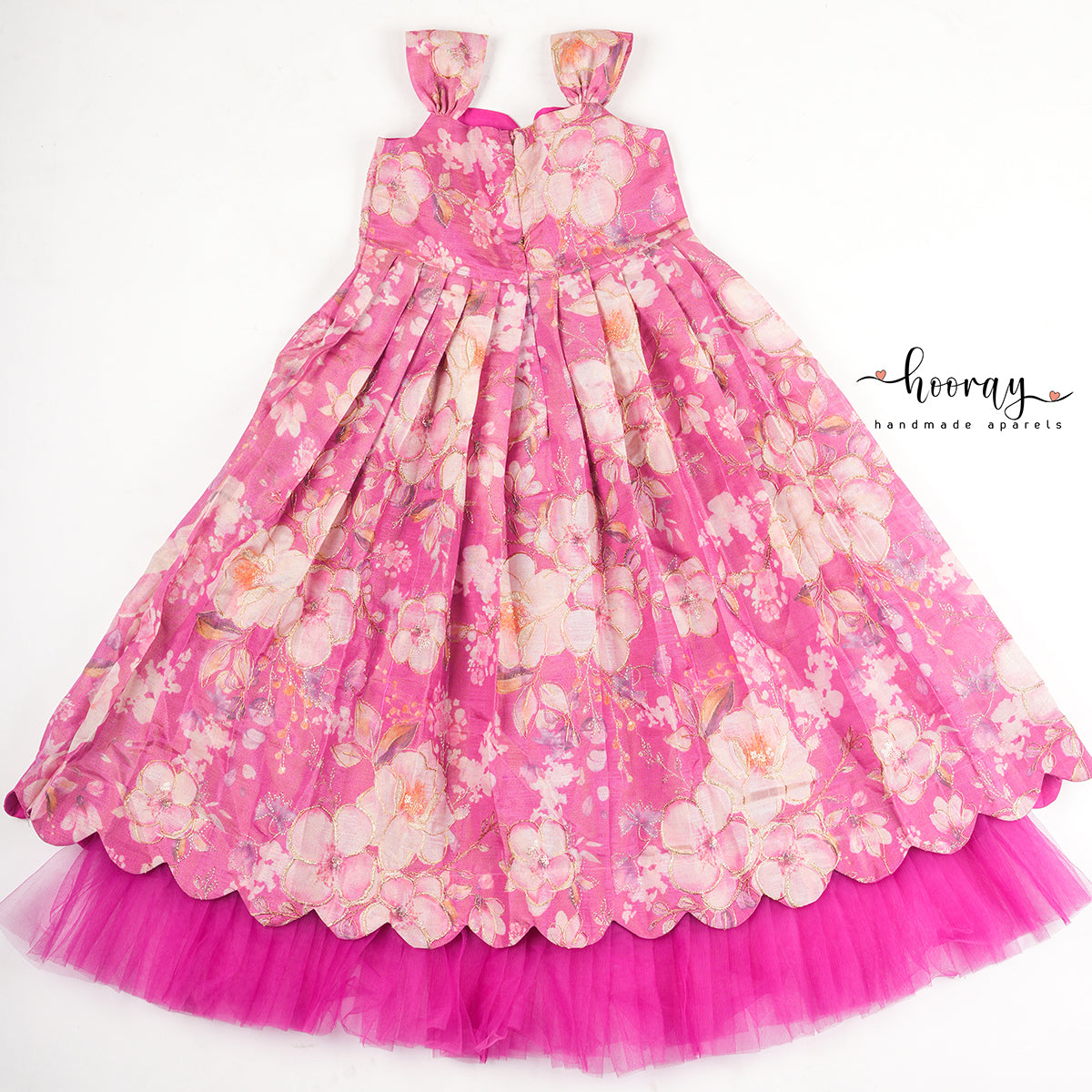 Type of Work: Full Gown with scallop work on bottom Attached with Net frills