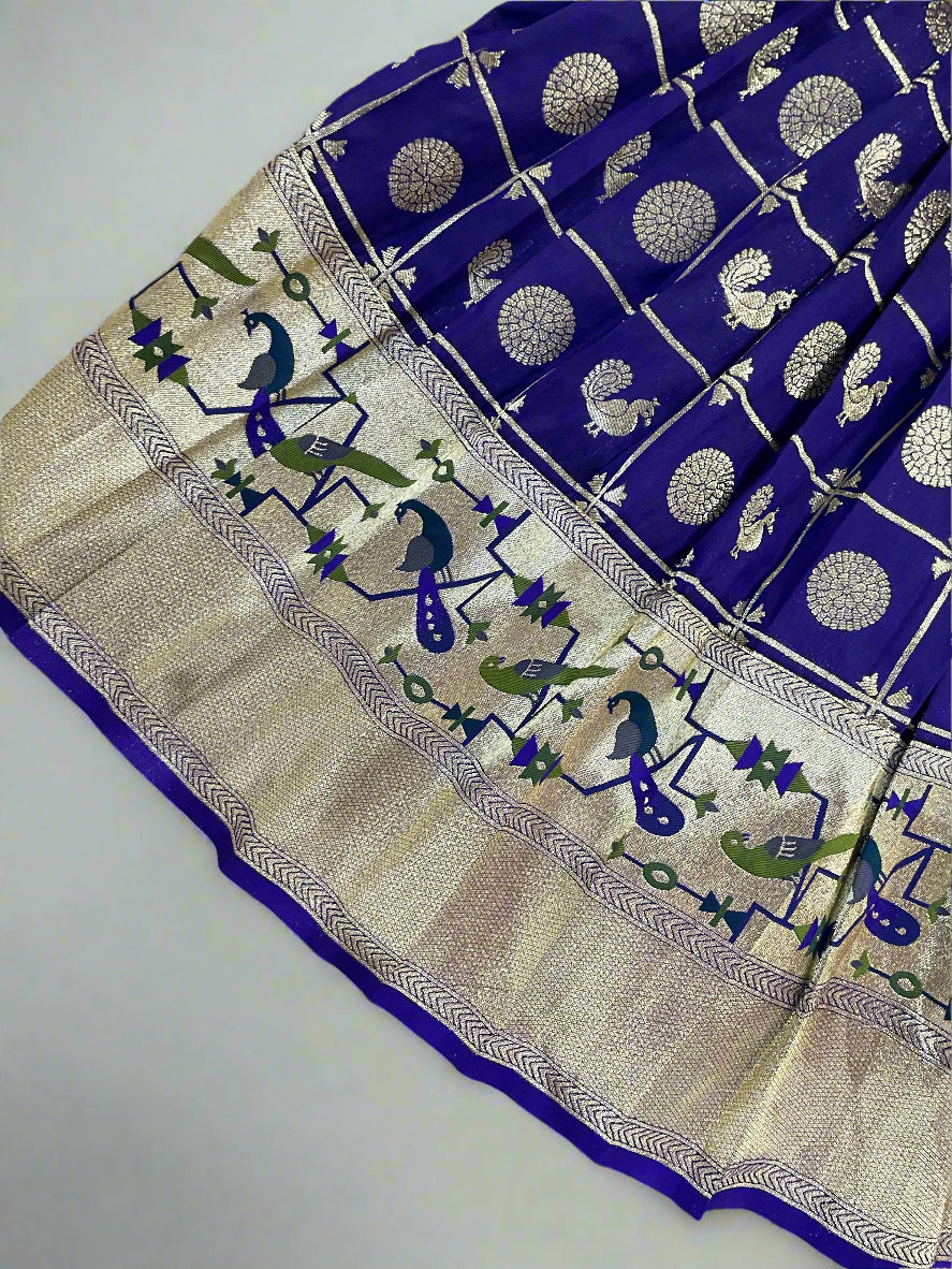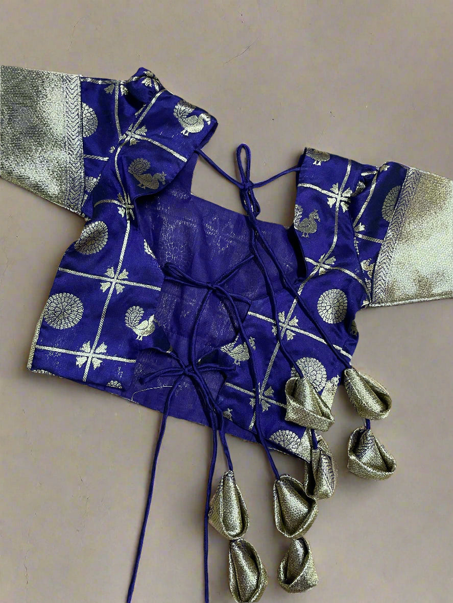 Type of Work: patched Border work bottom of the blouse , fully knotted back blouse with tassels