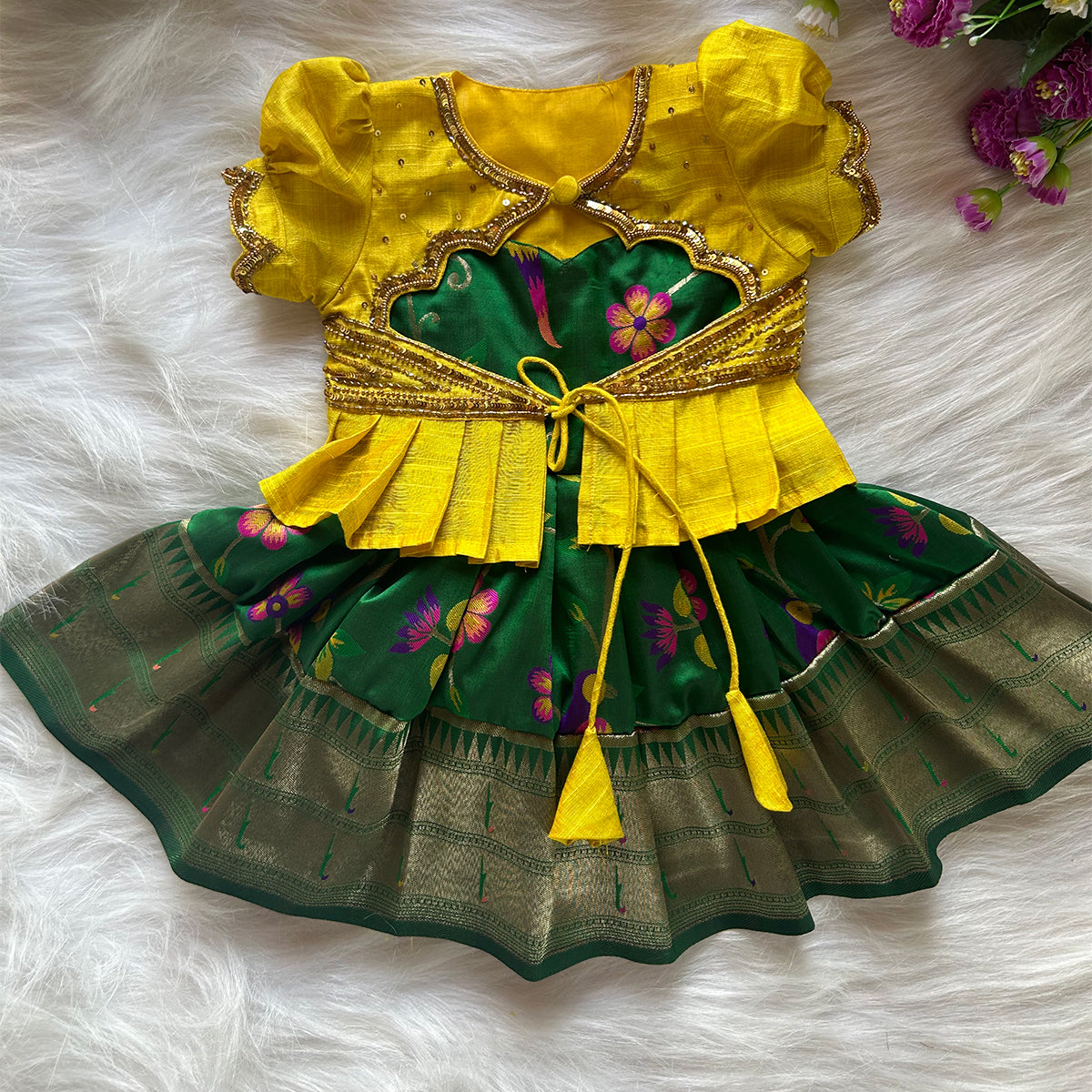 Type of Work: Front open Arch Cut overcoat with Outline highlighted Aari and peplum at end of the Top