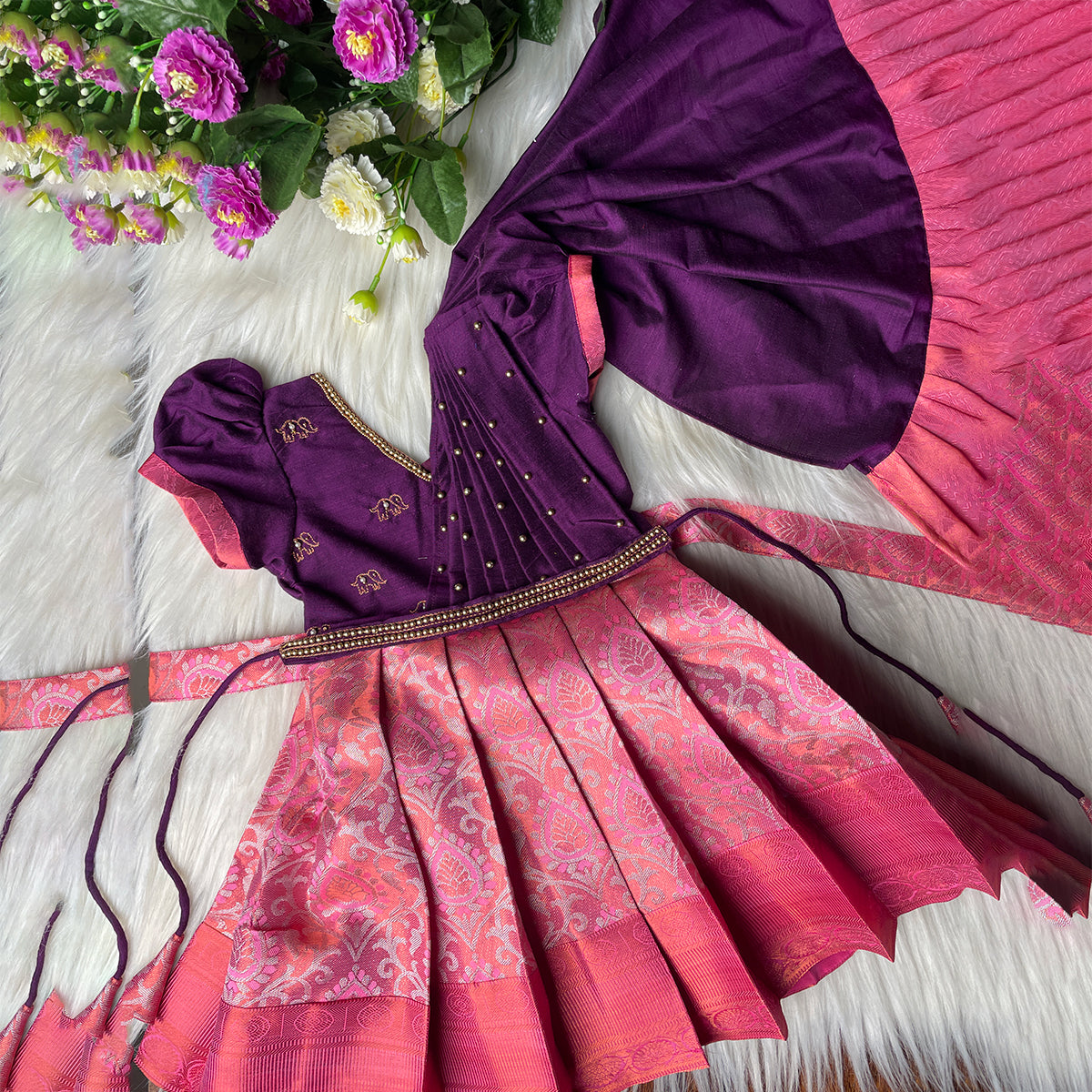 Type of Work: Elephant Shaped Aari work on Top With Wrapped Styled Dupatta and worked Belt