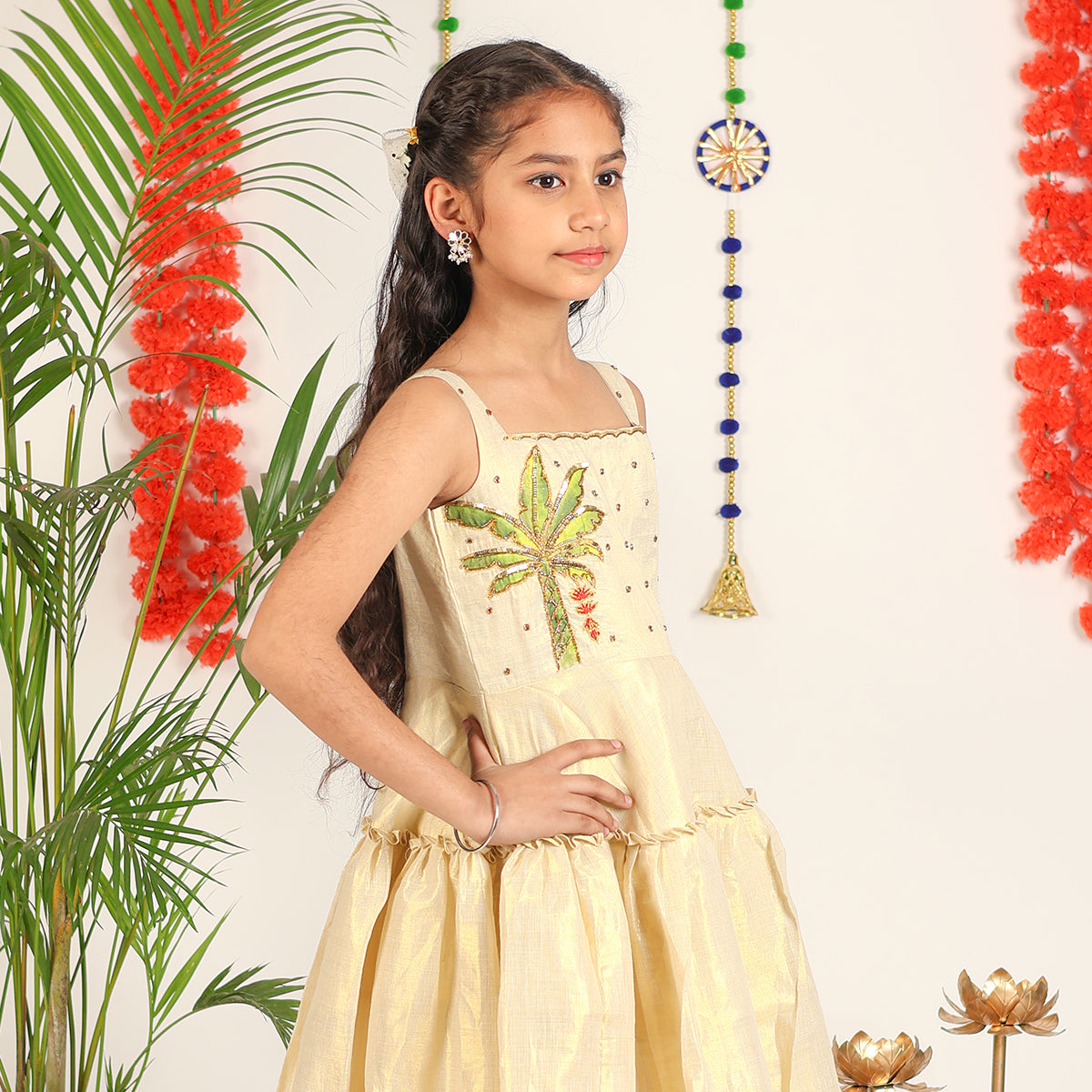 Type of Work: Layered Gown With BANANA LEAF Painted & Highlighting Aari works
