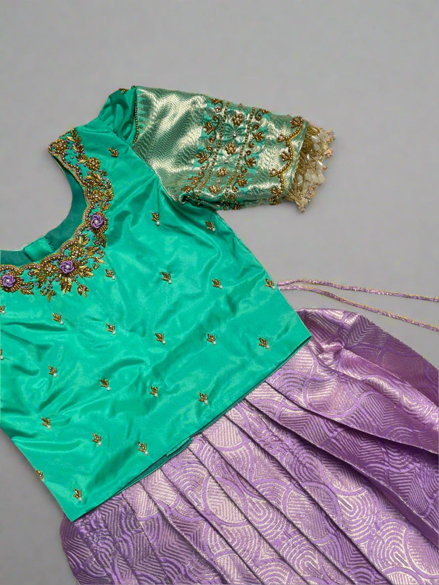 Type of Work : Aari work on all over top neckline, sleeves and dupatta