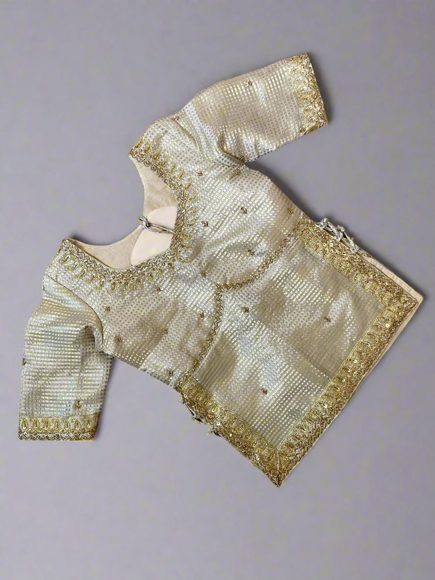 Type of Work: grand aari work on sleeves, neck, back and buttas allover the top
