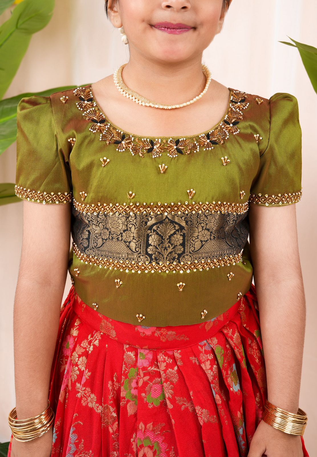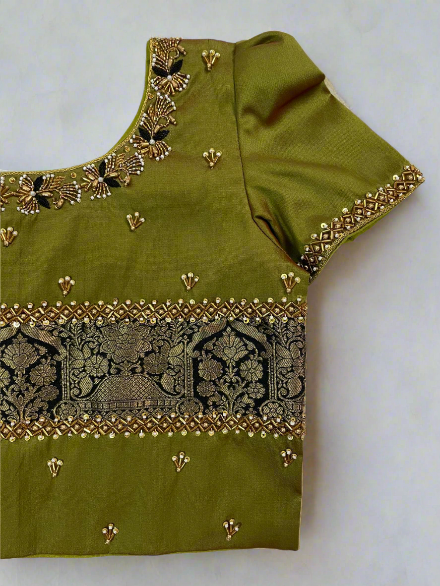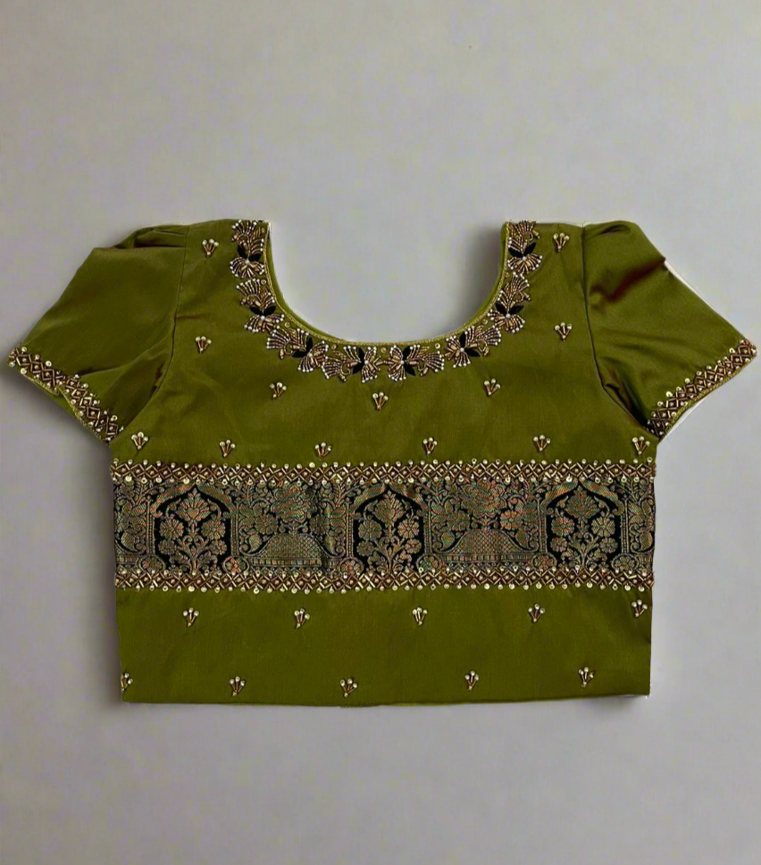 Type of Work : skirt border lined with beautiful work and elegant neckline aari work