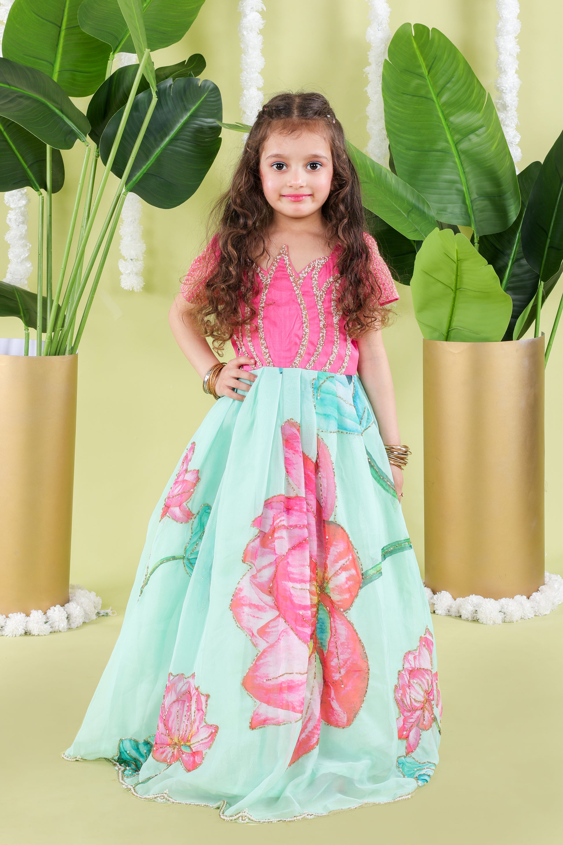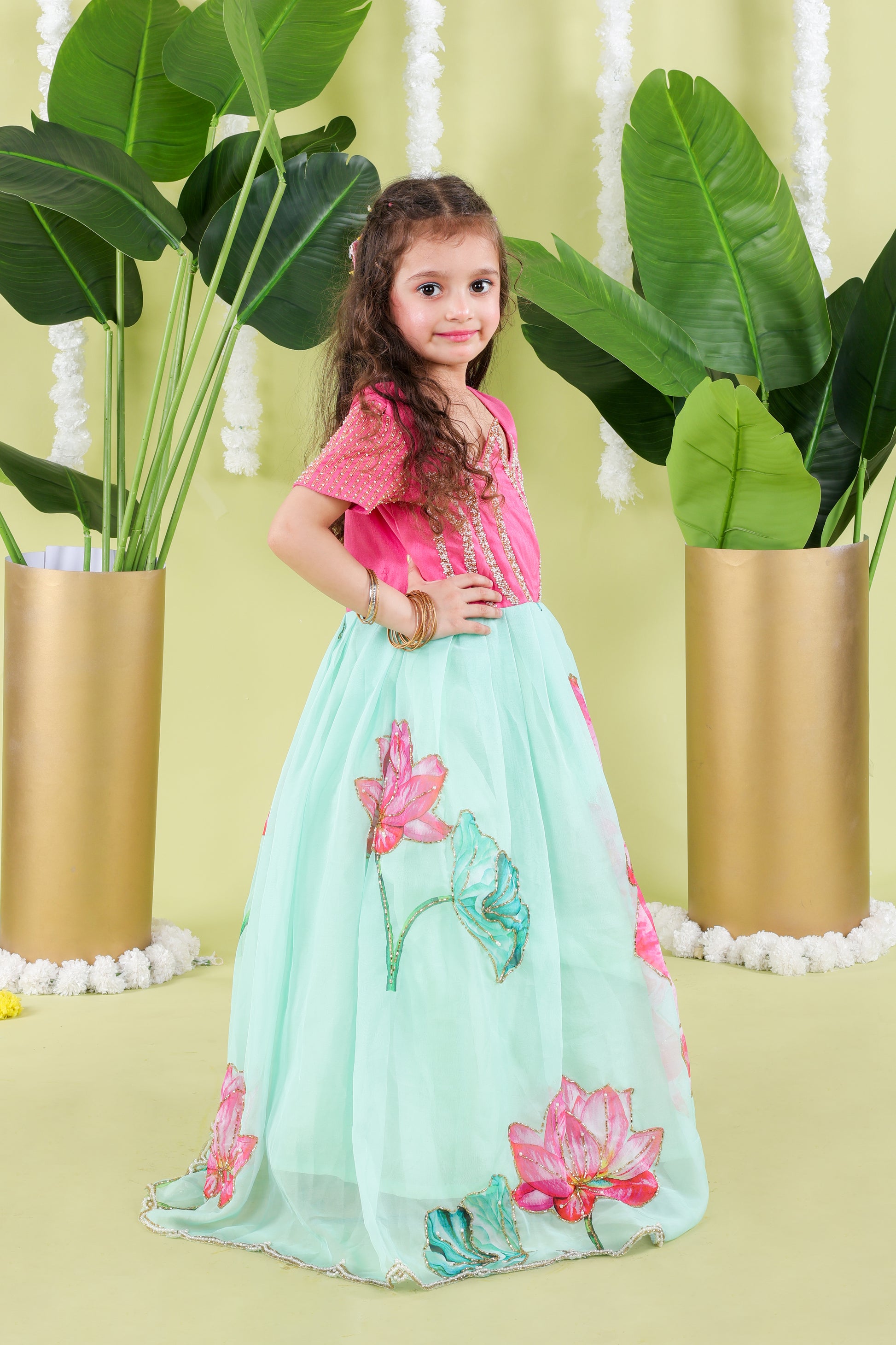 Type of Work: yoke filled with Lotus ,Highlighted aari work on lotus &  Scalloped  aari work on bottom