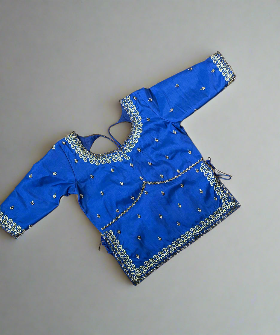 Type of Work: grand aari work on sleeves, neck, back and buttas allover the top