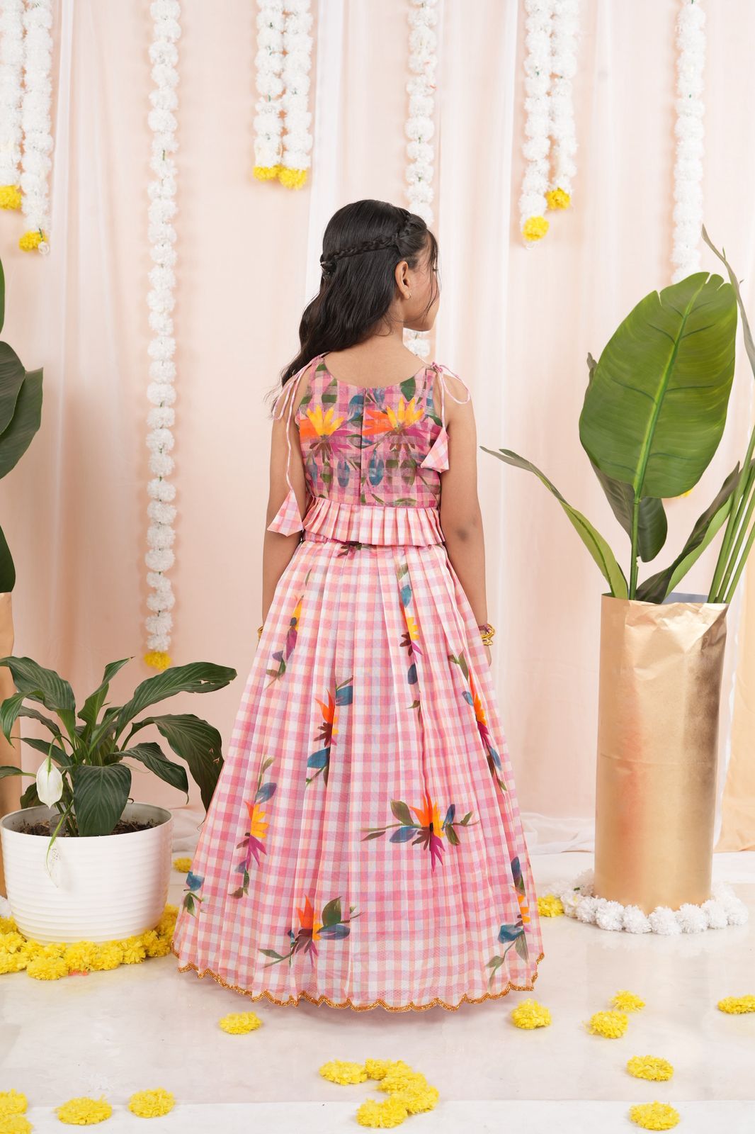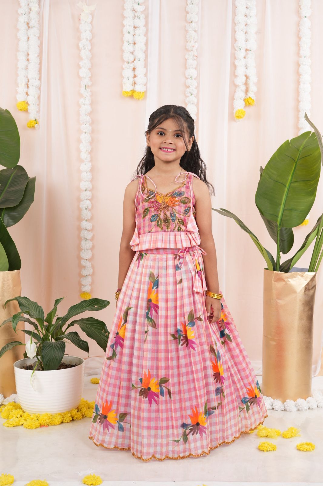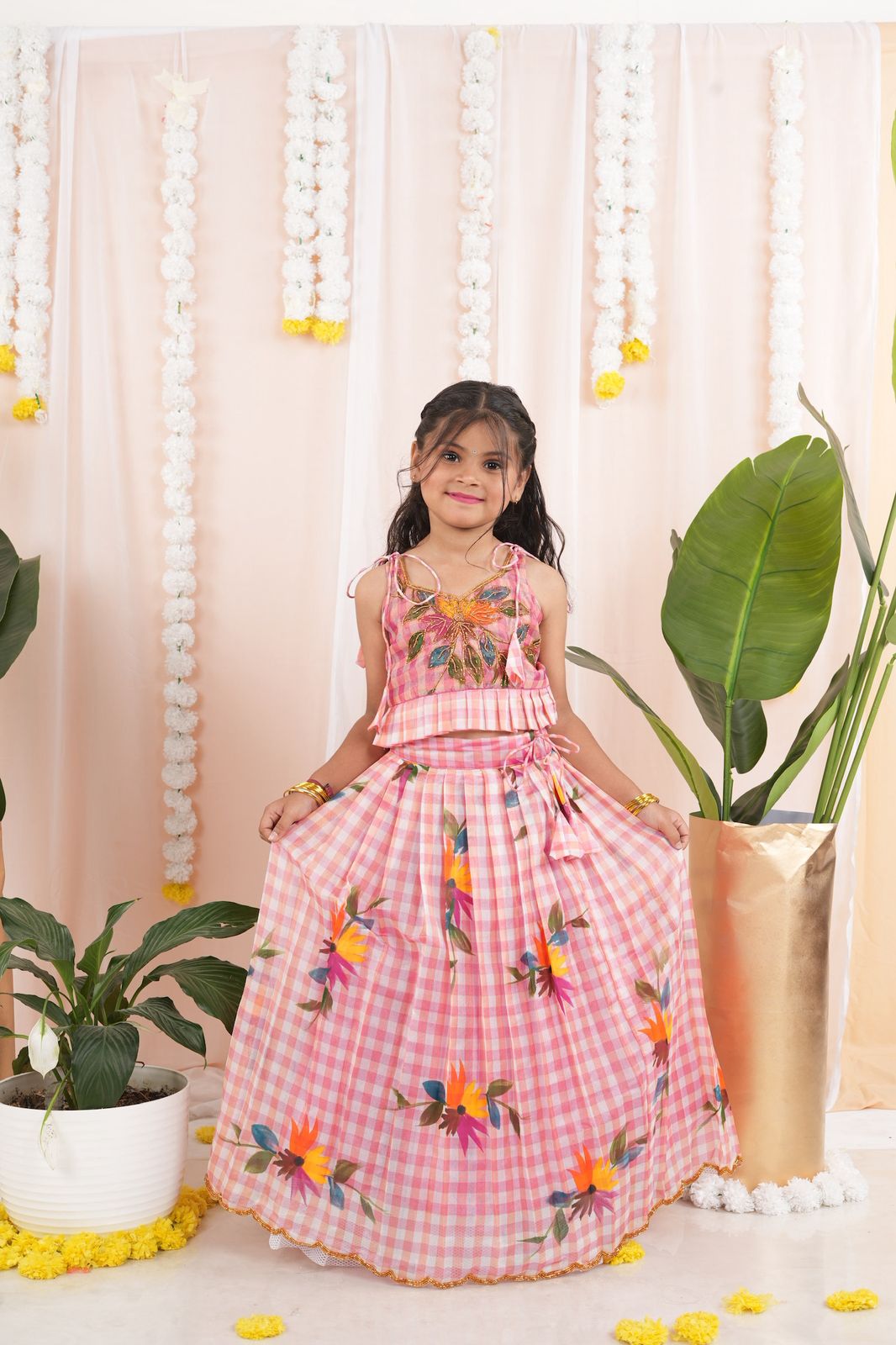 Type of Work : Flowers highlighted on Top and Scallop work on Skirt