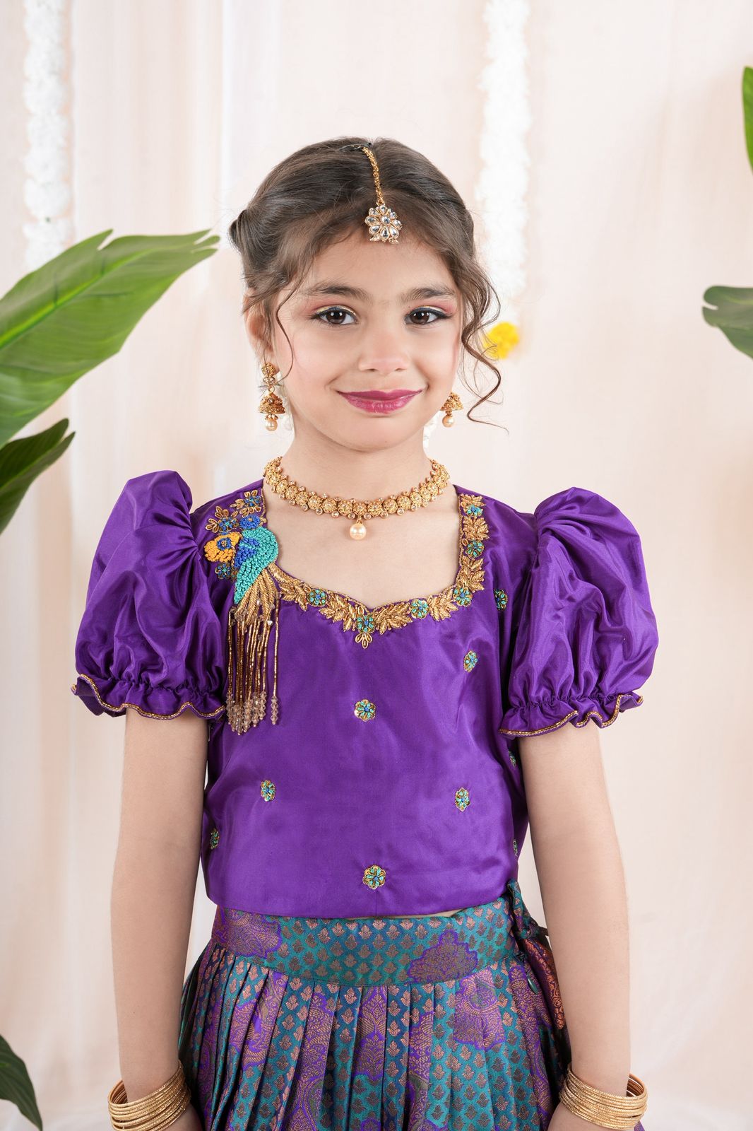 Type of Work: aari work on all over top and neckline with parrot 3D patch