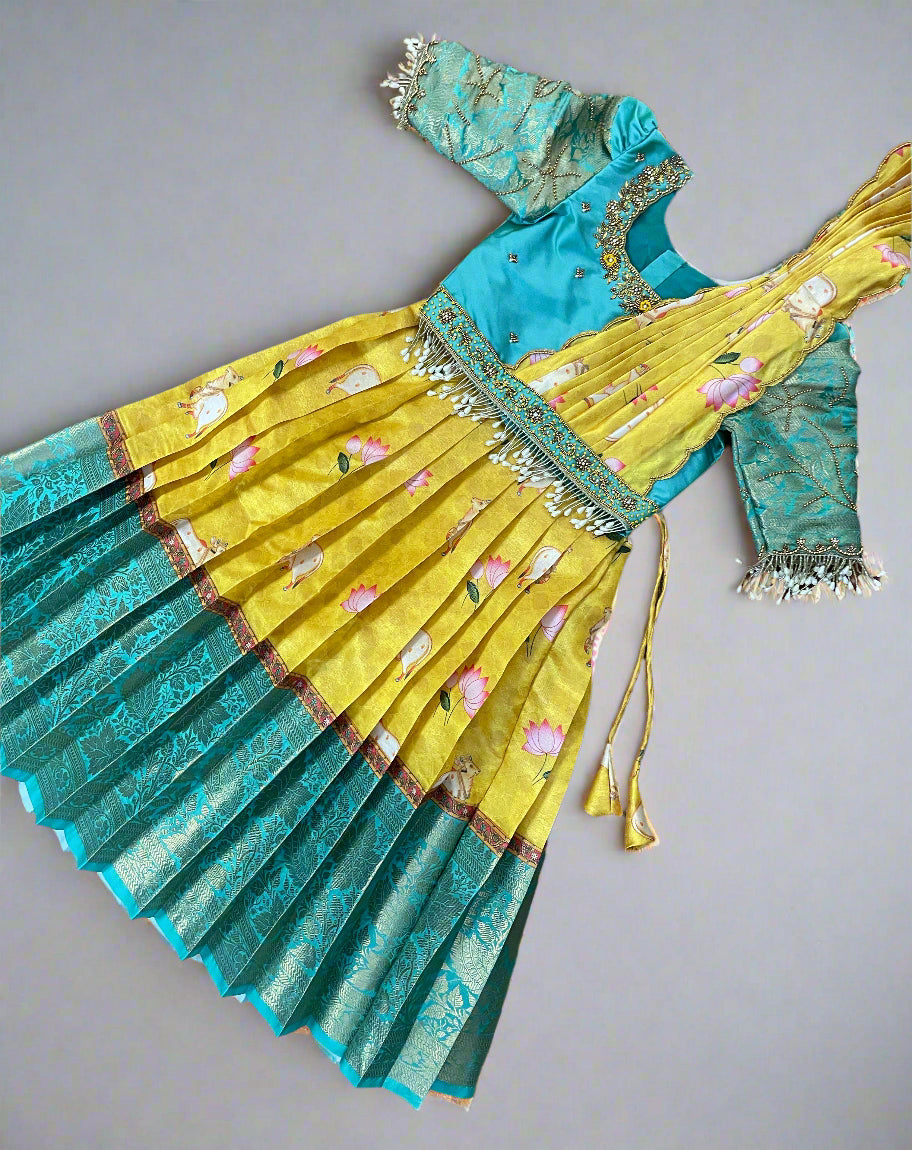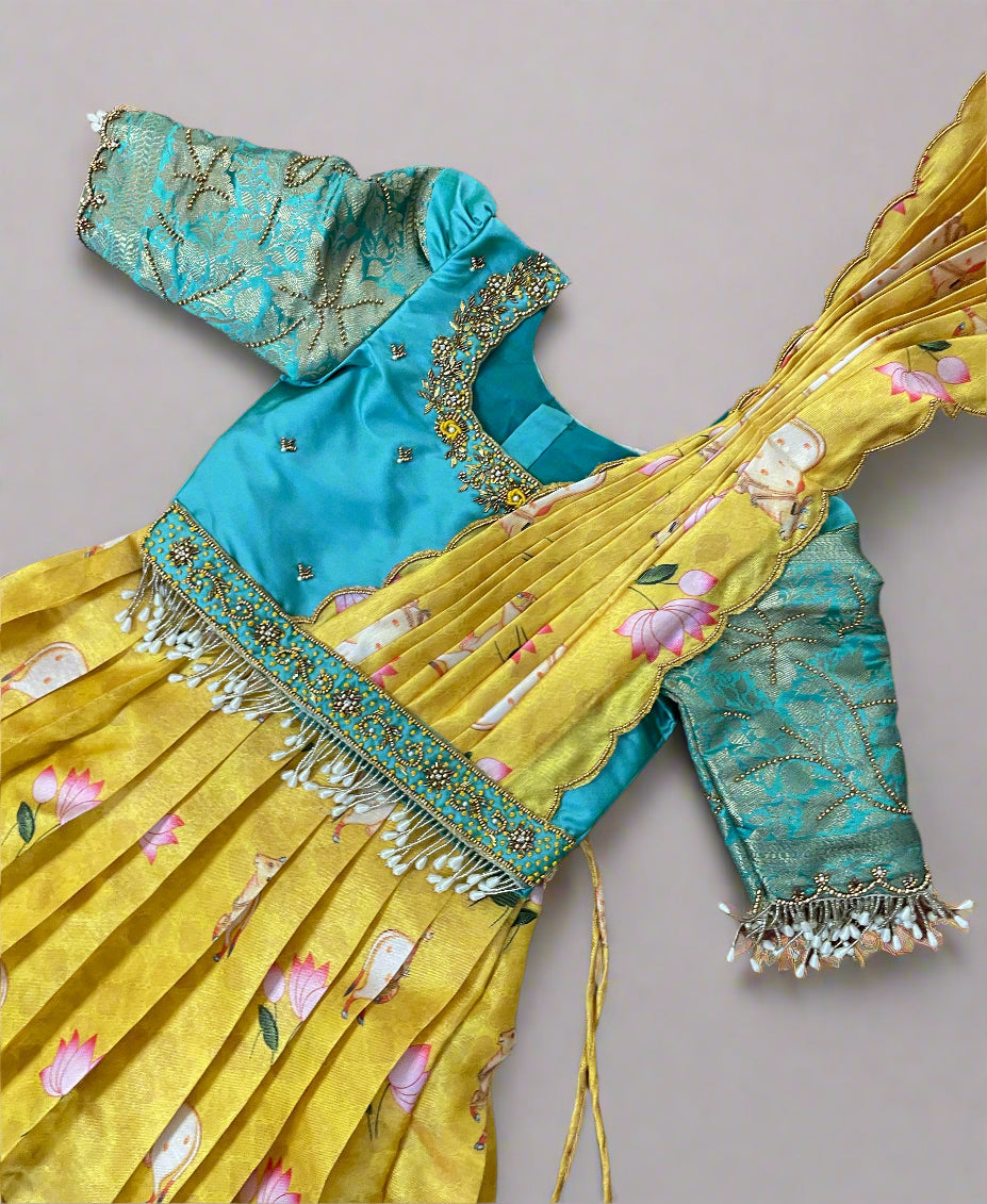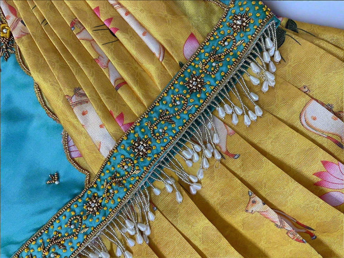 Type of Work: beautiful aari and floral work on neck and sleeves highlighted, dupatta and belt is filled with golden aari work