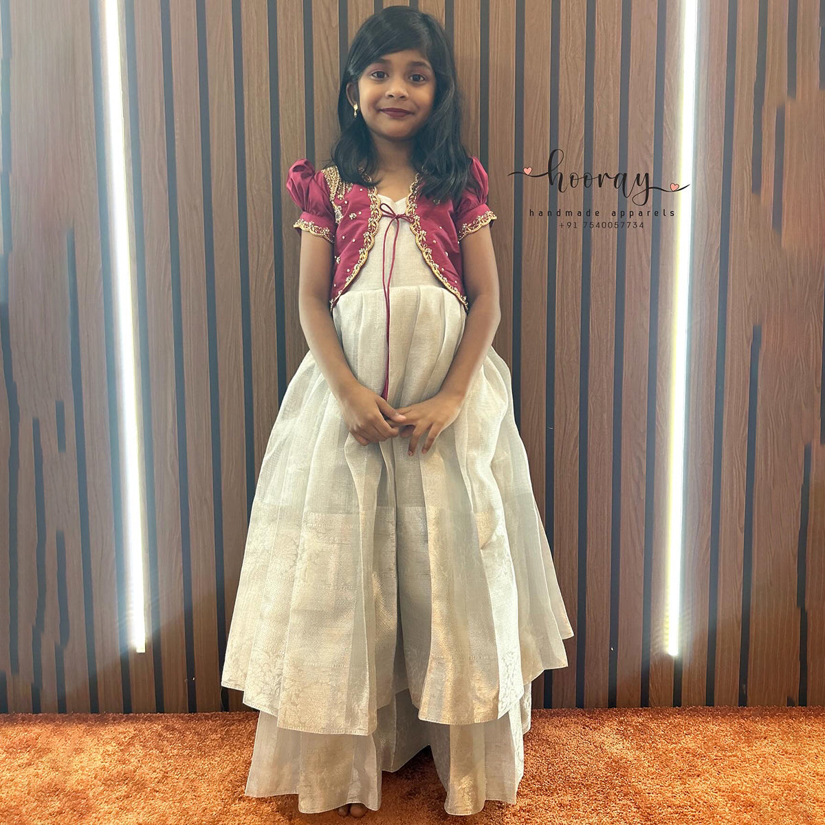 Type of Work: Aari work filled with Cage pattern ; Double Layered petticoat