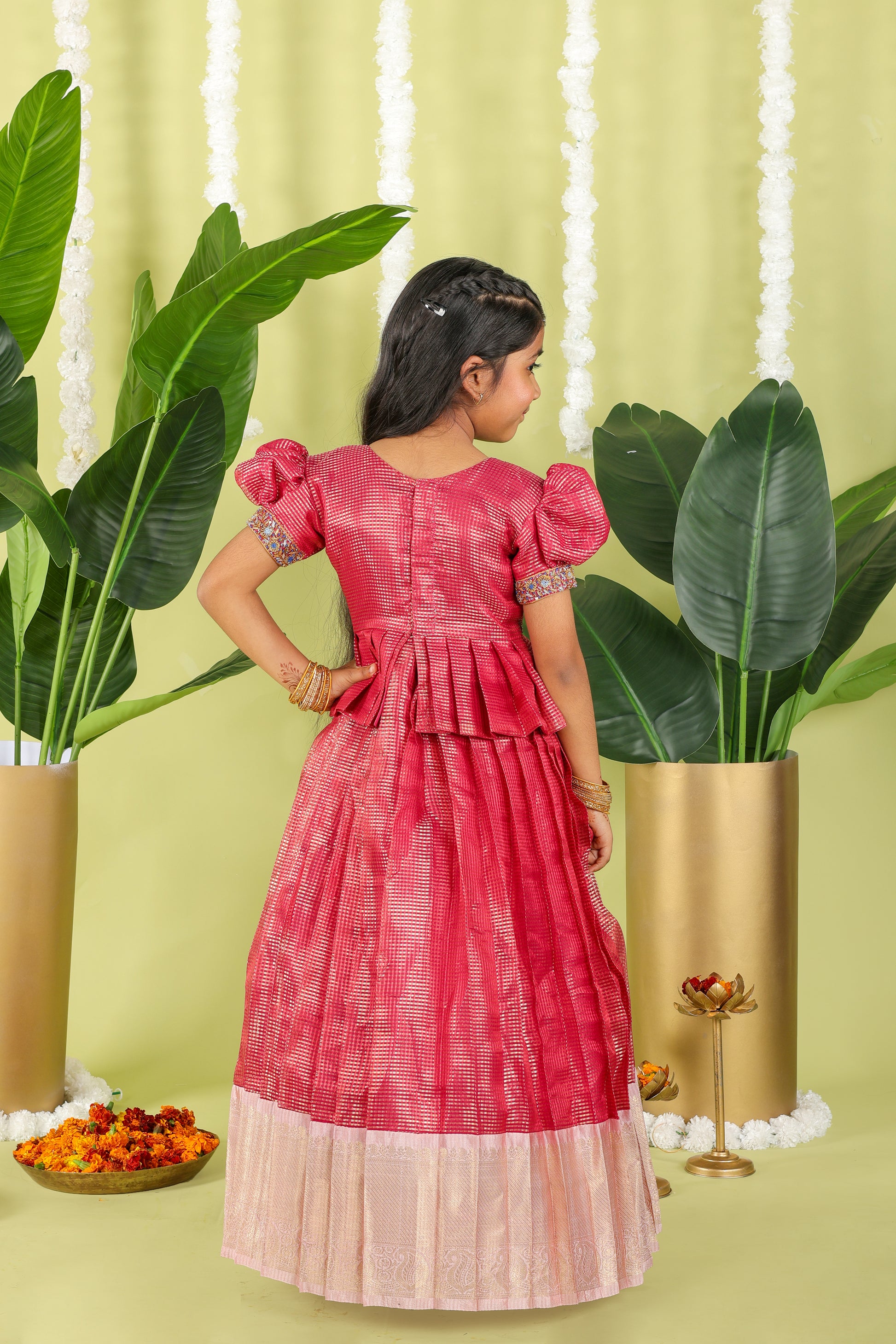 Type of Work: Arch shaped Heavy Garden themed Aari work on Blouse with peplum patterned and sleeve lines