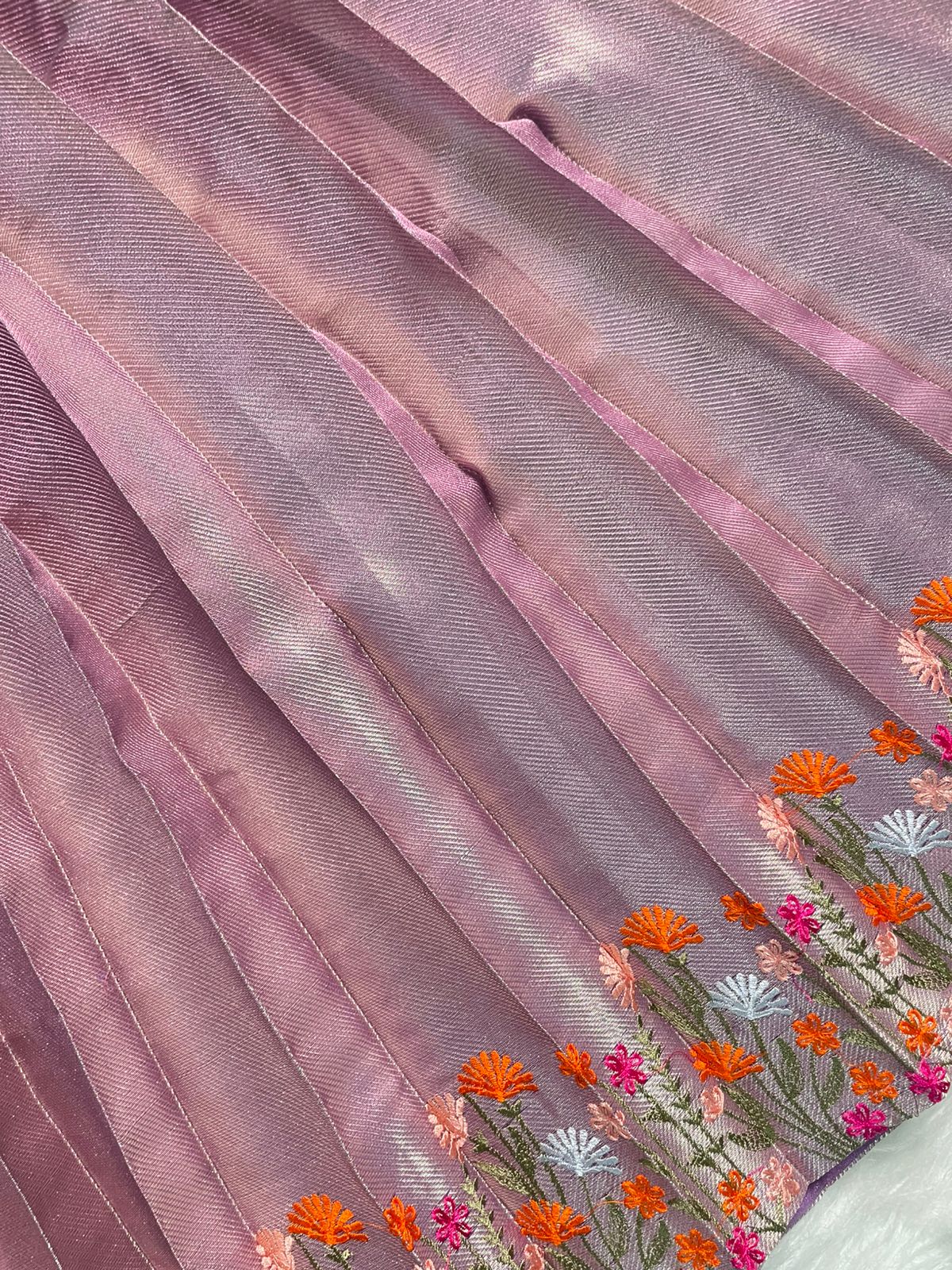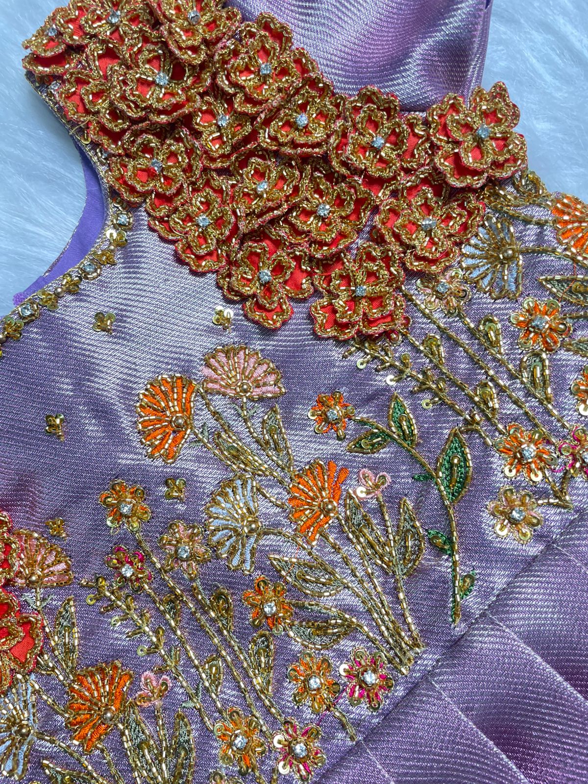 Type of Work : Heavy aari flower work on shoulders and highlights on the yoke